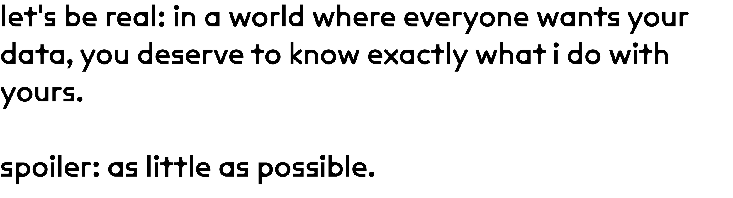 your growth patterns? relevant. your email for marketing lists? not my business (unless you want ofc). your breakthrough moments? important. your browsing history? couldn't care less.