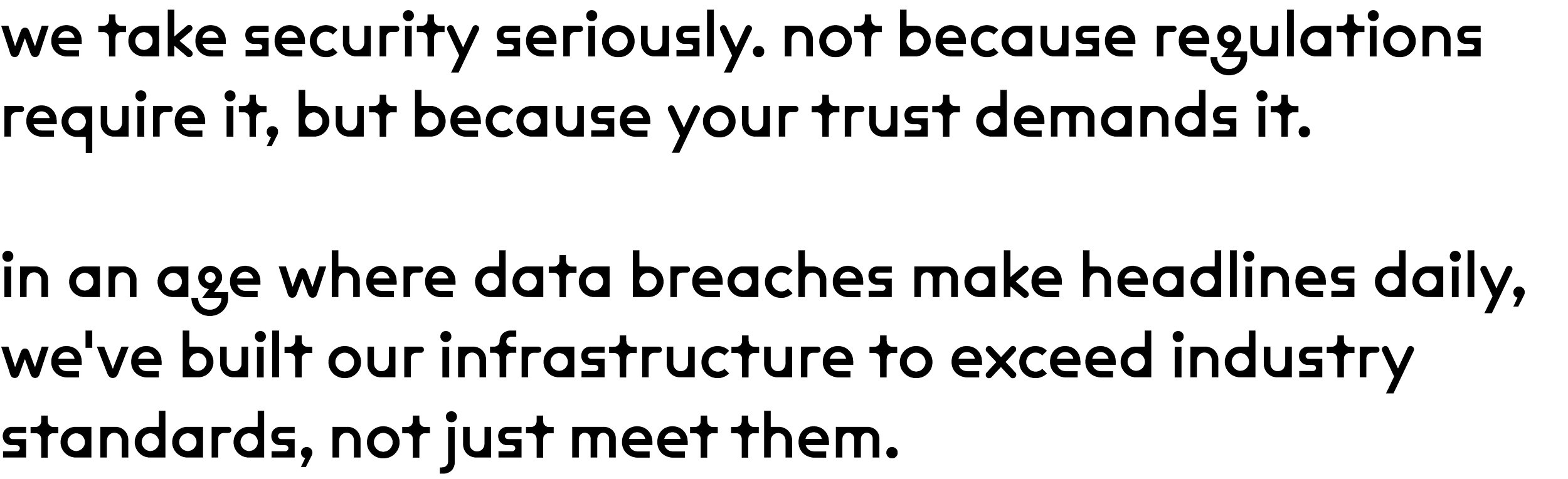 we invest more in security than most companies our size because we understand what's at stake. your journey toward realignment requires vulnerability. that vulnerability deserves fortress-level protection.